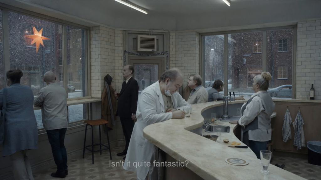 Più che una descrizione del tema, l’infinitezza è un’indicazione della forma. Andersson prosegue la poetica codificata da “Canzoni del secondo piano” (Prix du Jury a Cannes 2000) a “Un piccione seduto su un ramo riflette sull’esistenza” (Leone d’oro 2014), una serie di tableaux vivants non necessariamente legati fra loro, brevi o brevissimi scorci di vita quotidiana imbevuti di un sarcasmo graffiante e onirico.
