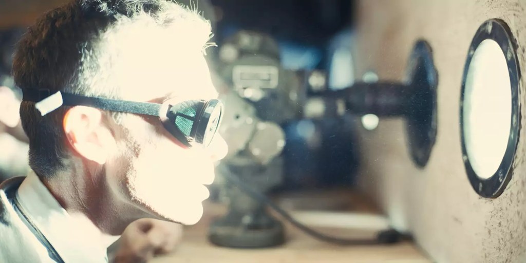 La parte più solida del film è quella più convincente. Sia dal punto di vista narrativo, con vari duelli che trainano il racconto (Murphy-Damon, Murphy-Blunt, Murphy-Pugh, Murphy-Safdie…); sia dal punto di vista estetico, con la costruzione visionaria di Los Alamos e Hoyte van Hoytema che finalmente esce dalle aule – di università, di tribunale – e compie il solito miracolo. L’ocra del deserto e il buio della notte lasciano il posto al bianco abbacinante della bomba. La nube esplode in cielo come un bianco orgasmo che partorisce la distruzione del mondo, mentre Oppenheimer dà sfogo alla propria fissazione scopica attraverso uno spioncino.