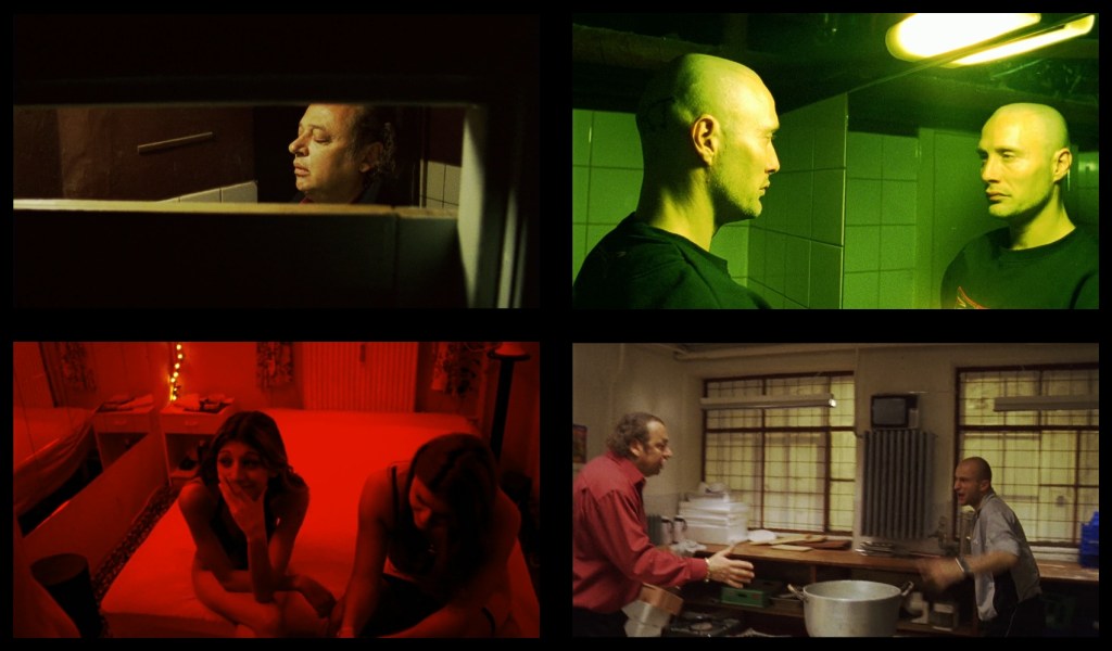 L’idea stessa di chiusura, affine ai concetti di blocco, sbarramento, angustia, soffocamento, rigidezza, claustrofobia, si manifesta a livello visuale nella bolgia stroboscopica delle piste techno, nel rosso asfissiante delle camere a ore, negli squallidi retrobottega. I personaggi non abitano l’ambiente, è piuttosto l’ambiente ad abitare i personaggi colorandoli della stessa angustia, la stessa virulenza che domina luci, spazi e colori della cinematografia.