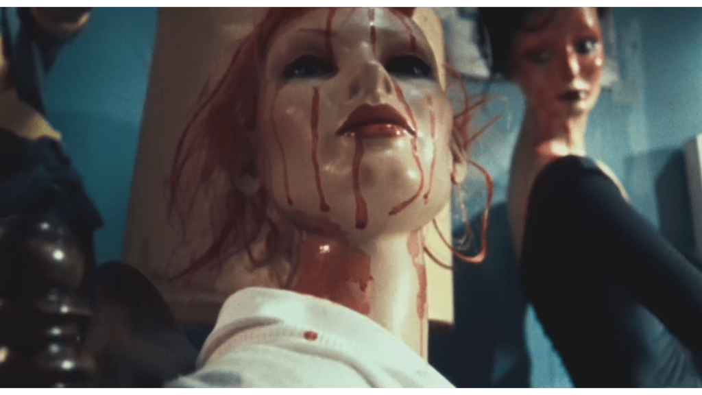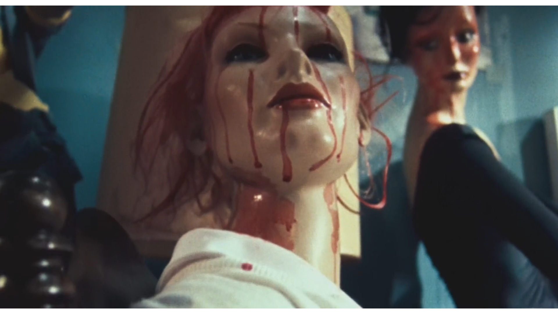 La differenza tra la bellezza radiosa, naturale di Jesse e quella sintetica delle altre è la stessa che intercorre tra il sole e il fanale di un’auto. L’accanimento con cui NWR dispone i corpi delle modelle in pose statiche, austere, li fa assomigliare a manichini (come già in Drive, e poi in Too Old To Die Young), tradendo un’ennesima influenza cinefila, quel Maniac (William Lustig, 1980) in cui il serial killer Frank Zito (Joe Spinell) arreda manichini con gli scalpi delle sue vittime (sotto).
