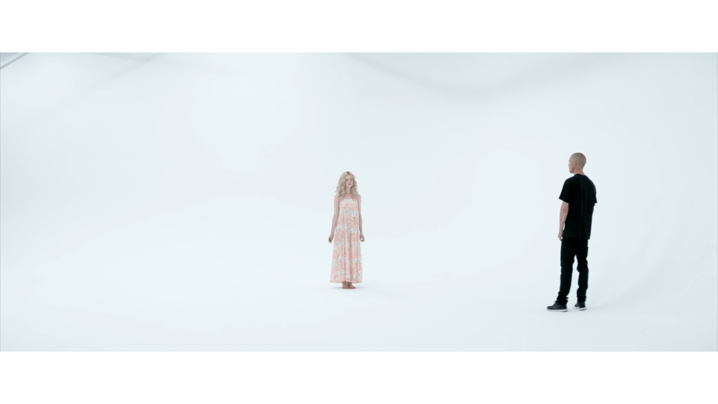 L’alone sfocato e brillante dei neon impedisce di lavorare sulla profondità di campo, ma avvolge le superfici in una glassa luminosa che leviga i profili e i materiali. L’ubiqua presenza di specchi contribuisce a levare profondità, fino a raggiungere una prospettiva bidimensionale tipica dei mosaici, della pittura bizantina. Alla pittura bizantina si rifanno anche gli sfondi, pseudo-monocromi dall’alto valore simbolico. Le donne vi sfilano come icone, riprese da una carrellata plastica che ricorda un’analoga carrellata nell’officina di Drive sulle carrozzerie lucide delle auto da corsa.